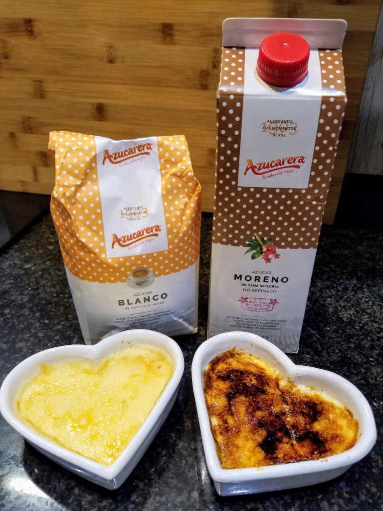 Sprinkle a tablespoon of turbinado or raw sugar on top of each ramekin. Use a hand-held culinary torch or if you’re lucky enough to have an old-fashioned iron or know someone you can borrow one from, use that instead. I’ve read mixed reviews on using the broiler method, some mentioning it can cause lumping and others just discouraging that method. It’s usually served cold or at room temp.